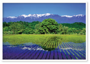 季節ごとの絶景をおくる12回。今月は「水田に映える峰々」の写真をお届けします。詳細は37面参照