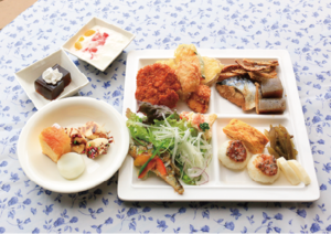 地域の食材を生かして、地元のお母さんたちが手作りするメニューが40種類以上並ぶバイキングレストラン。大人1,700円、小学生900円、幼児550円、幼児は無料で食事が楽しめます。詳細は11面「テラス時間」を参照