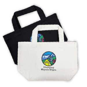 宮田高原グランピングのオリジナルミニトートをプレゼント! 施設は一区切りとなりましたが、このトートと一緒に高原の気持ちいい景色を楽しんでください♪ ※色はお任せください
