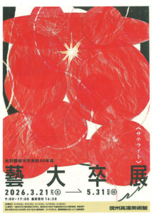 東京藝術大学との交流40年を記念し、卒業・修了作品展の一部を伊那市で開催。各専攻の優れた作品を紹介します。 3月21日(土)〜5月31日(日)まで開催。 ※詳細は54面イベントダイアリー参照