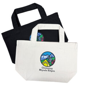 宮田高原グランピングのオリジナルミニトートをプレゼント! 施設は一区切りとなりましたが、このトートと一緒に高原の気持ちいい景色を楽しんでください♪ ※色はお任せください
