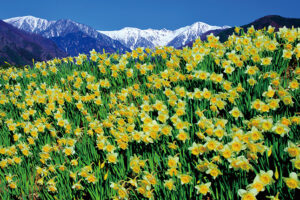 季節ごとの絶景をおくる12回。今月は「スイセンと宝剣岳」の写真をお届けします。 ※詳細は41面参照
