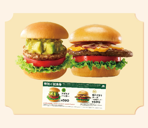モスバーガー「アボカドバーガー or 新とびきりチーズ 特別ご試食券」